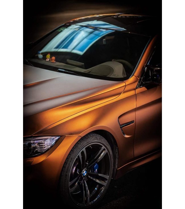 Premium copper metallic liquid vinylfolie med luftkanaler för bubbelfri installation.